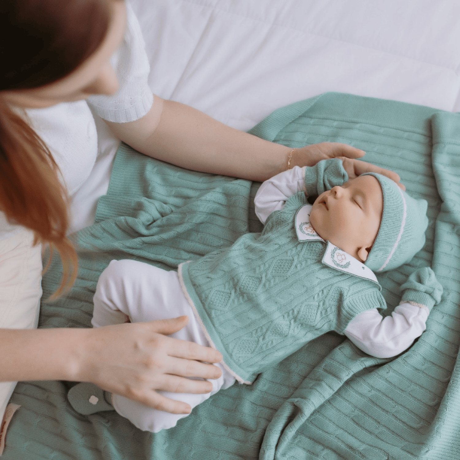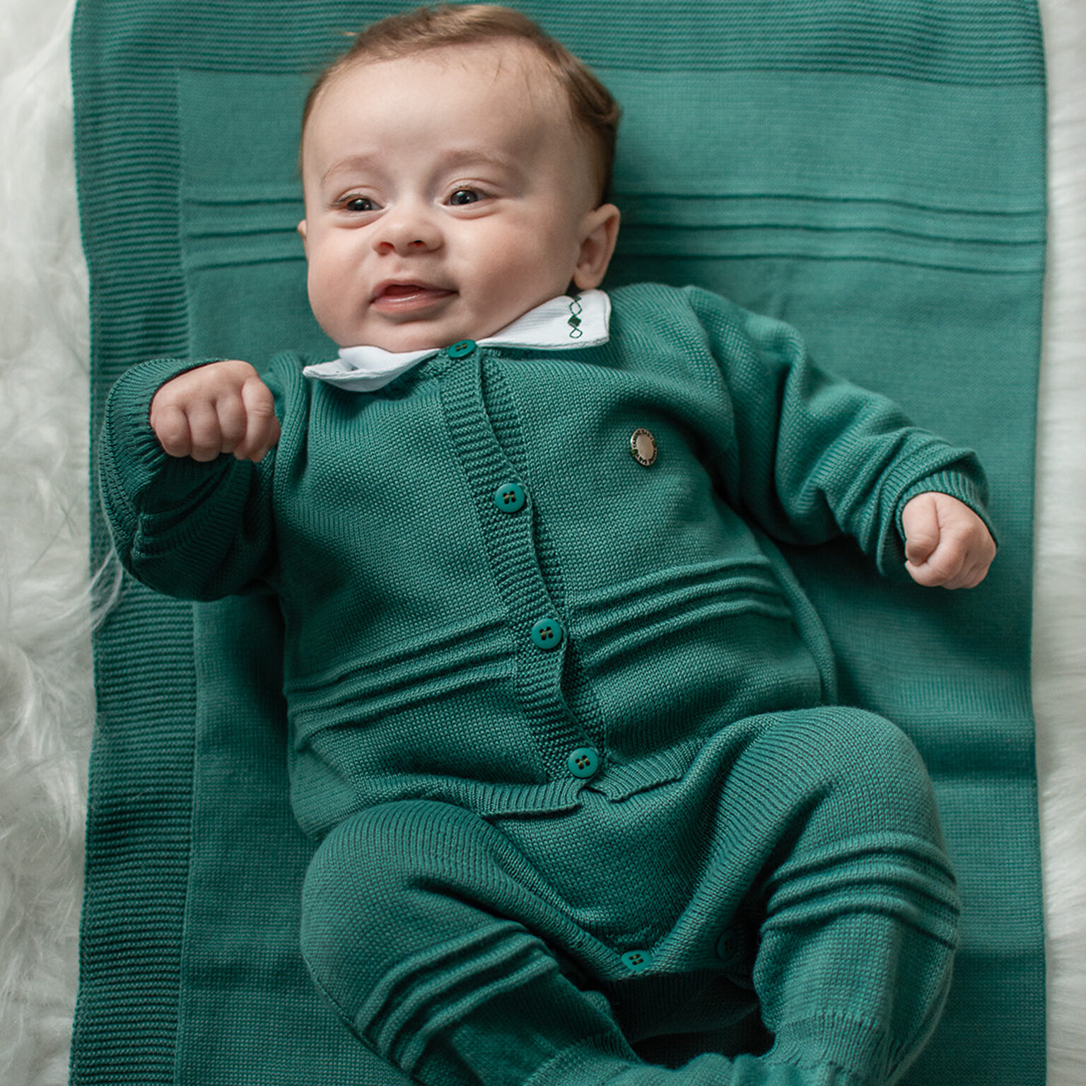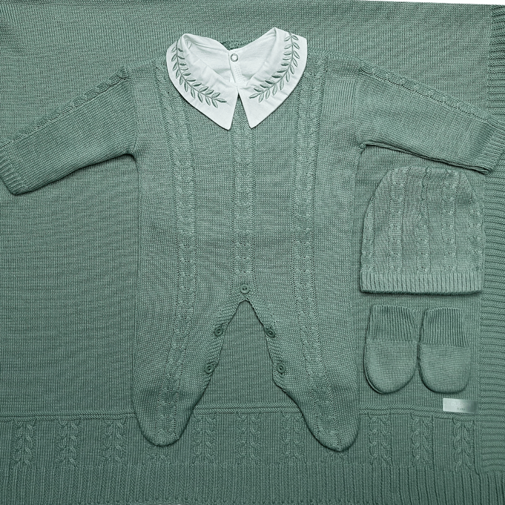 Kit Saida Maternidade Menino P Tricot 4 Peças 1 a 3 Meses Verde Esmeralda