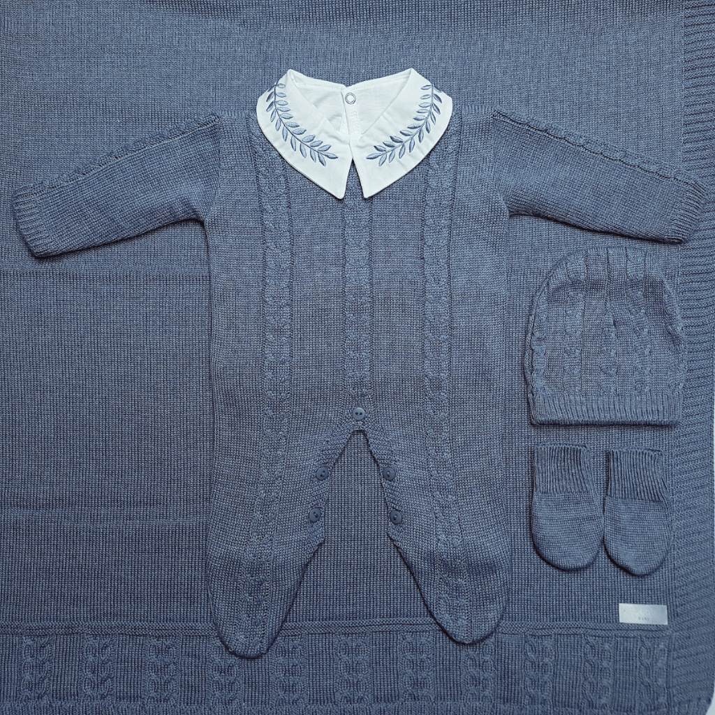 Saída Maternidade Tricot Menino Trança Tam 1 a 3 Meses Dubabi Baby