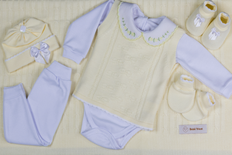 Kit Saída Maternidade Completa Menina 7 Peças Tamanho RN Amarela