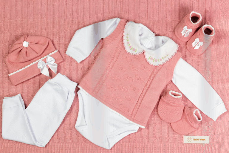 Kit Saída Maternidade Completa Menina 7 Peças Tamanho RN Rosa Chique