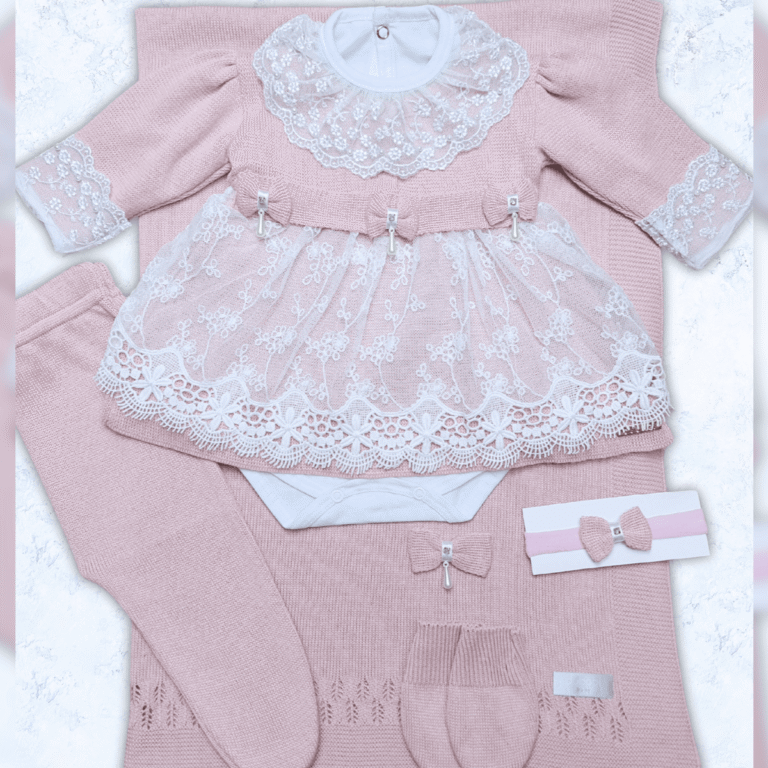 Kit Saída de Maternidade Menina Tricot Conjunto Recem Nascido Princesa Rosa Bebê