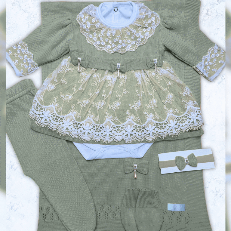 Kit Saída de Maternidade Menina Tricot Conjunto Recem Nascido Princesa Verde Bebê