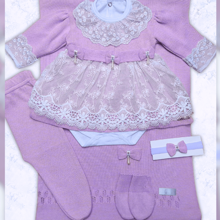 Kit Saída de Maternidade Menina Tricot Conjunto Recem Nascido Princesa Lavanda