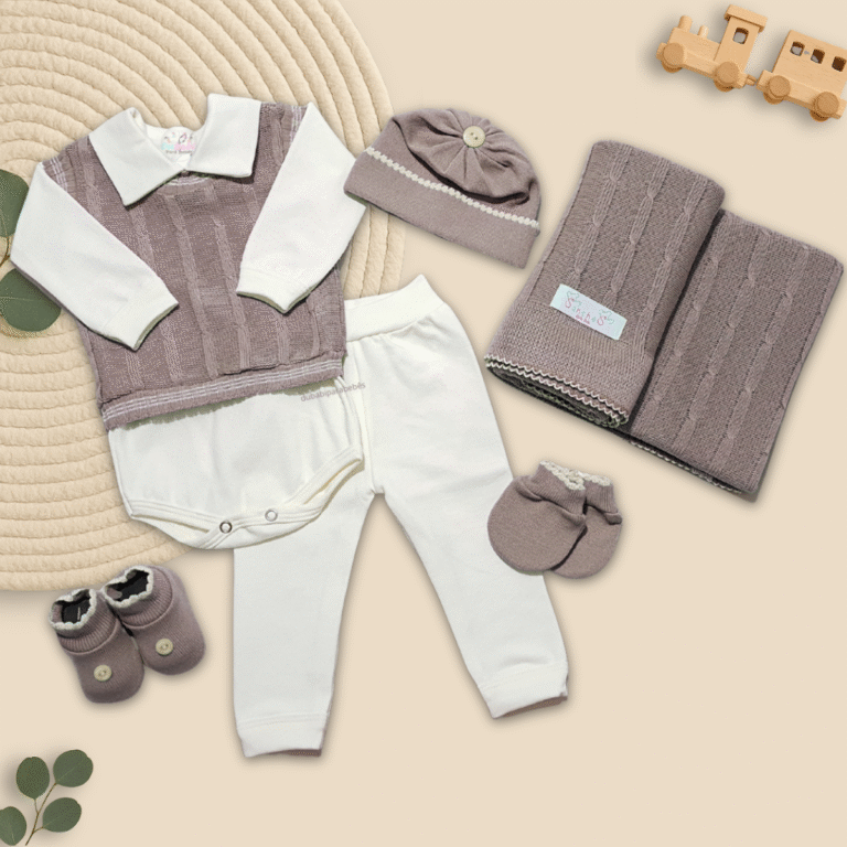 Conjunto Saida Maternidade Completa Recem Nascido Menino 7 peças Bege