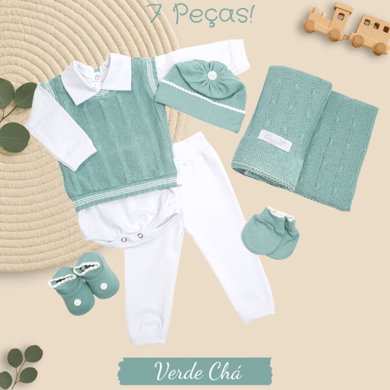 Conjunto Saida Maternidade Completa Recem Nascido Menino 7 peças Verde Chá