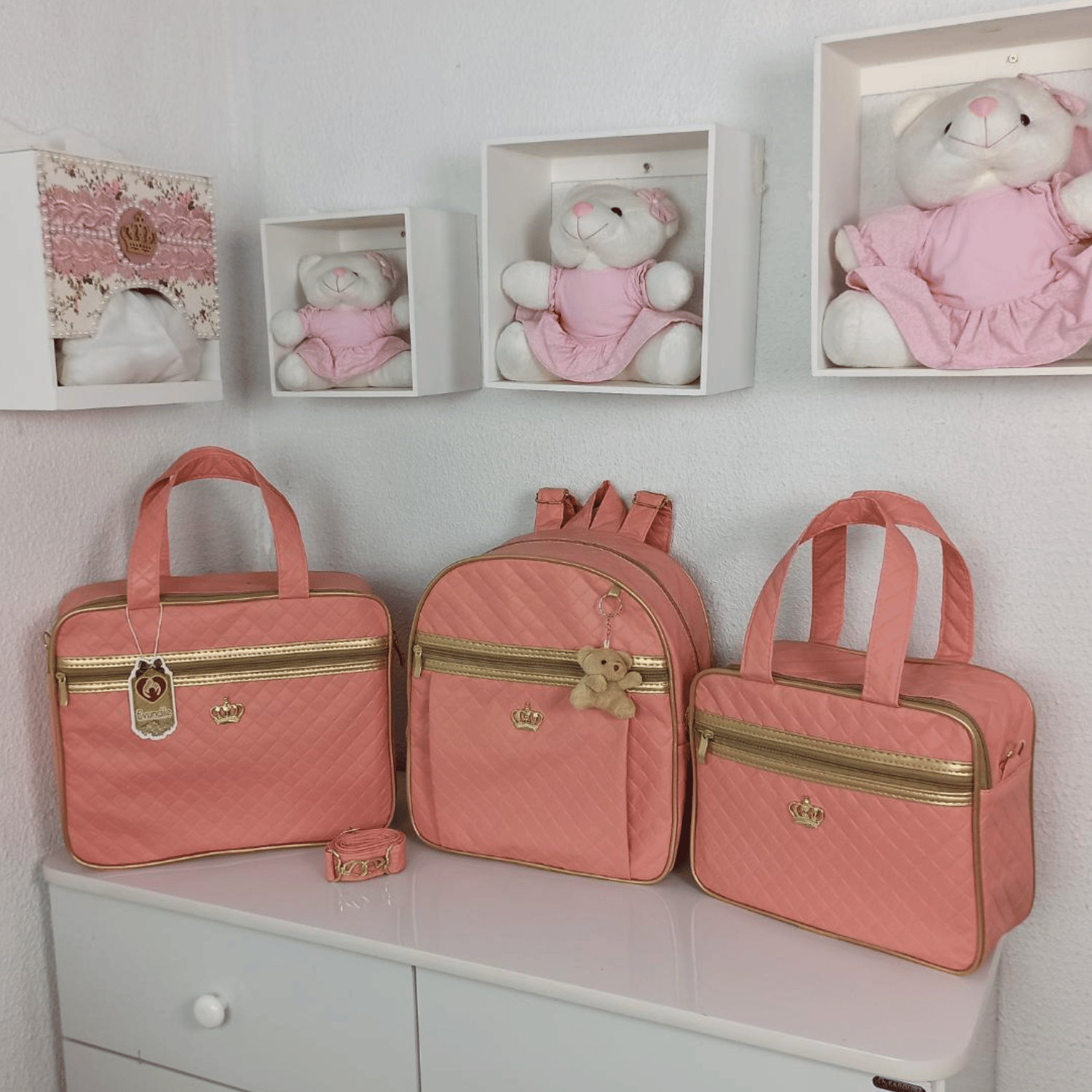 Bolsa Maternidade Feminino e Masculino Kit 2 Bolsas + Mochila + Trocador Rubi Salmon