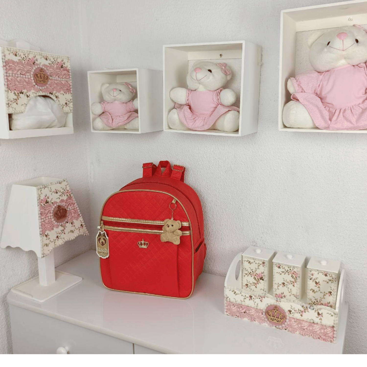 Bolsa Maternidade Feminino e Masculino Kit 2 Bolsas + Mochila + Trocador Rubi Vermelha