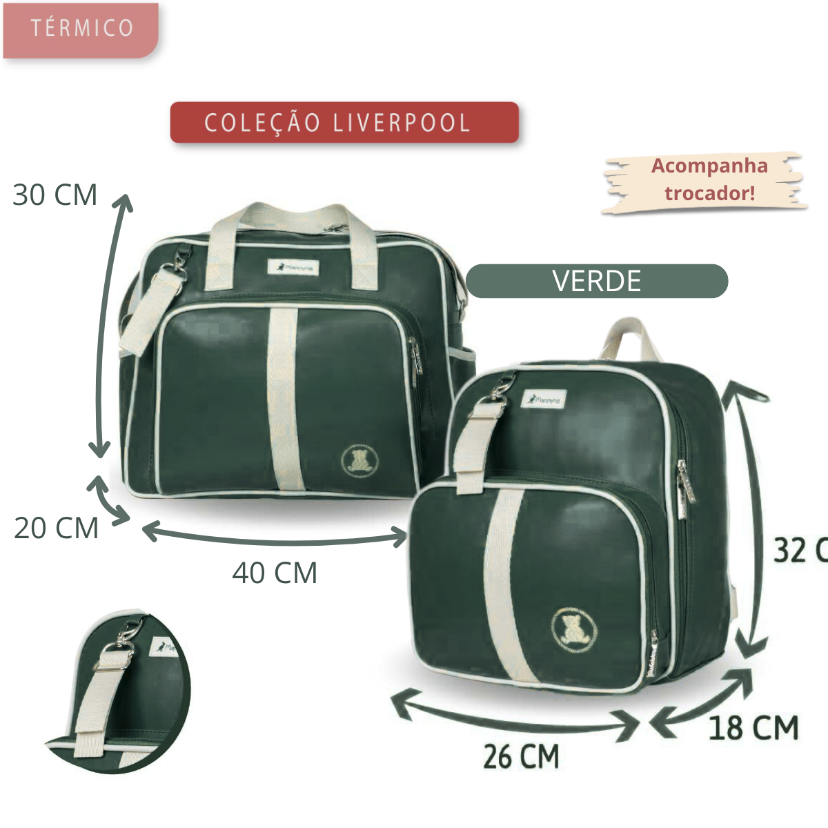 Kit Bolsa de Maternidade e Mochila Térmica Verde Luxo – Grande Espaço, Acompanha Trocador (cópia)