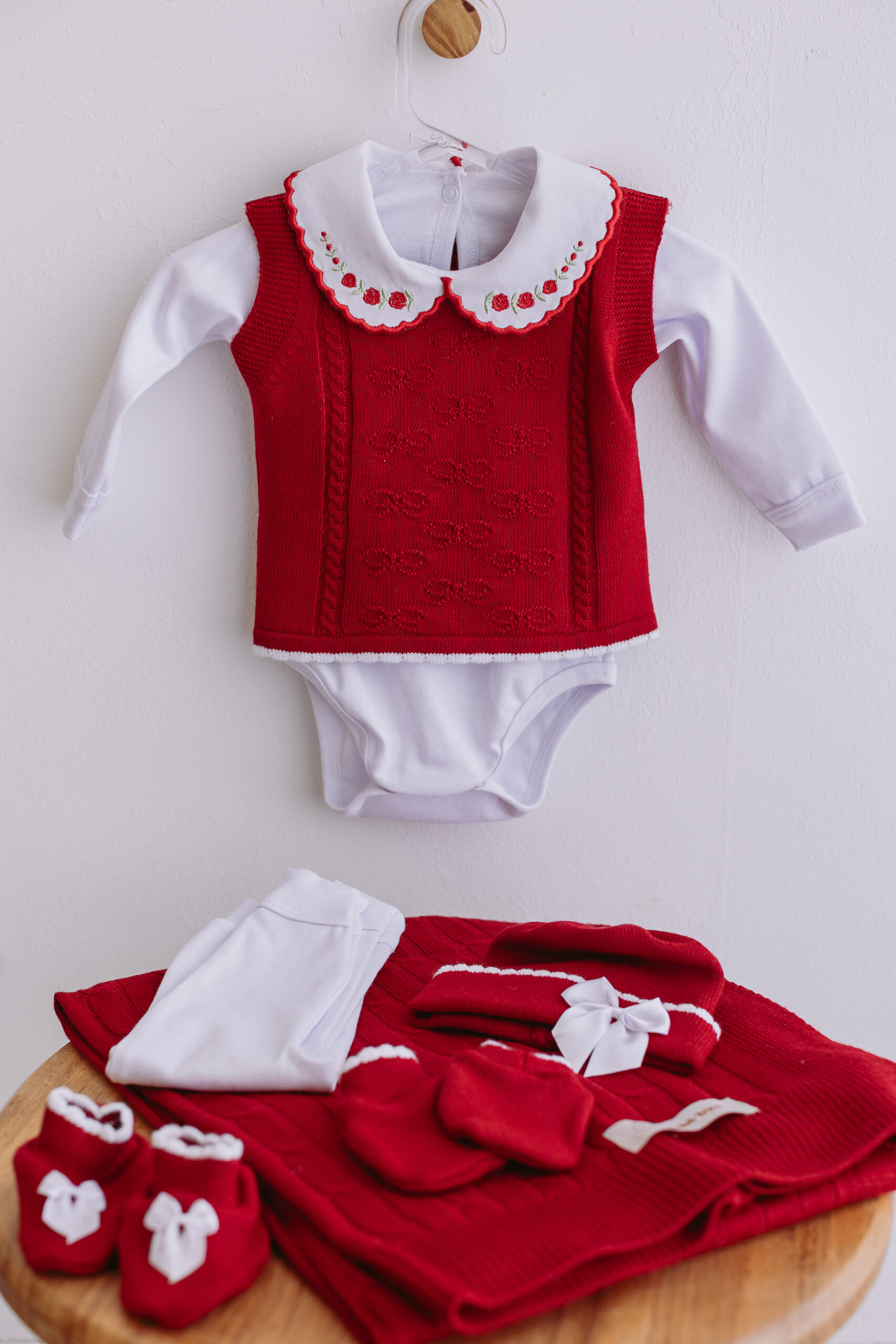 Kit Saída Maternidade Completa Menina 7 Peças Tamanho RN Vermelha