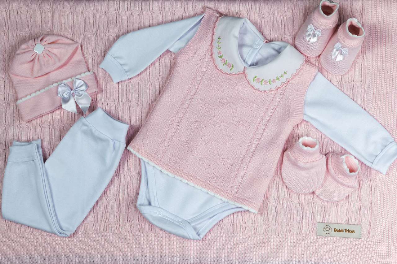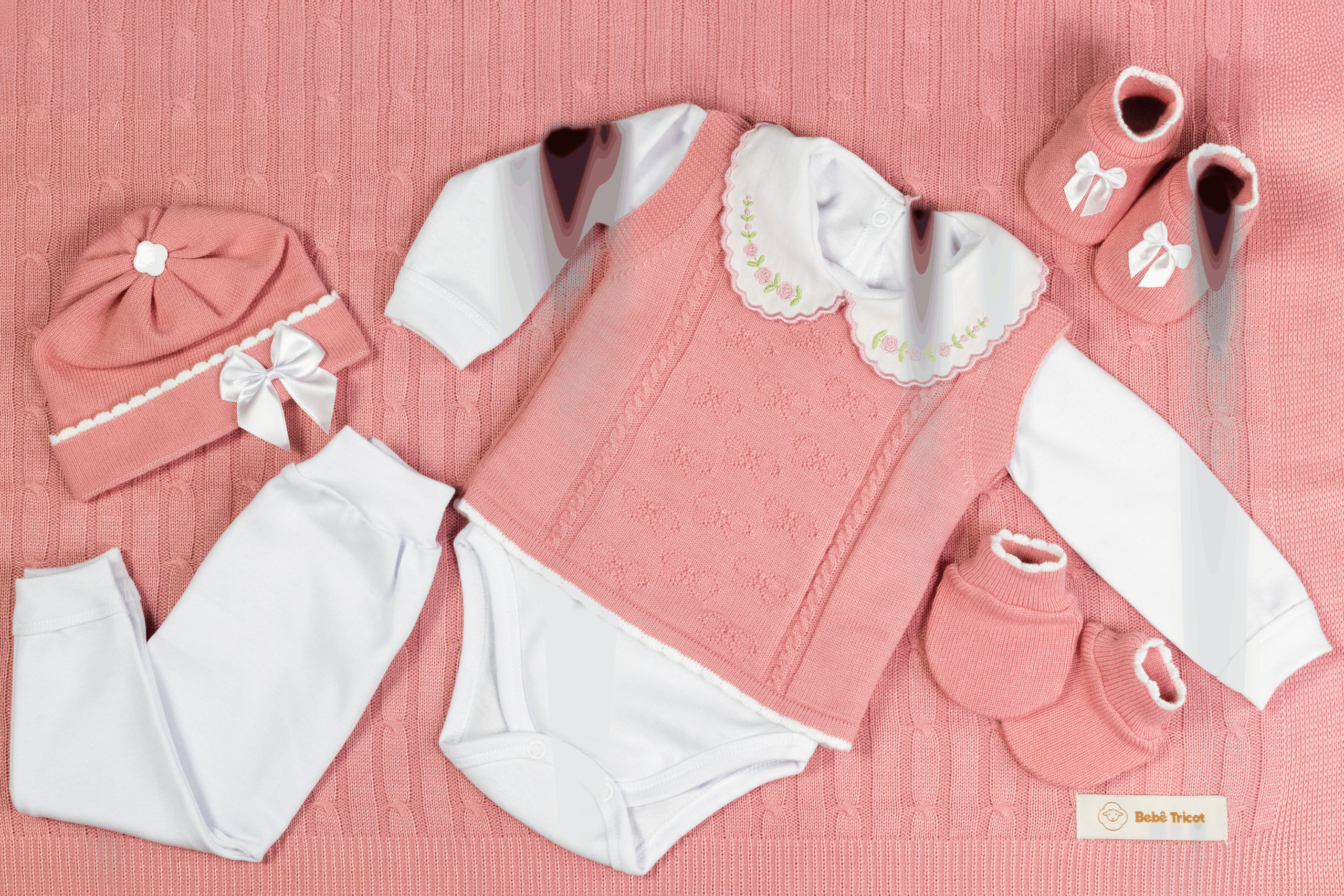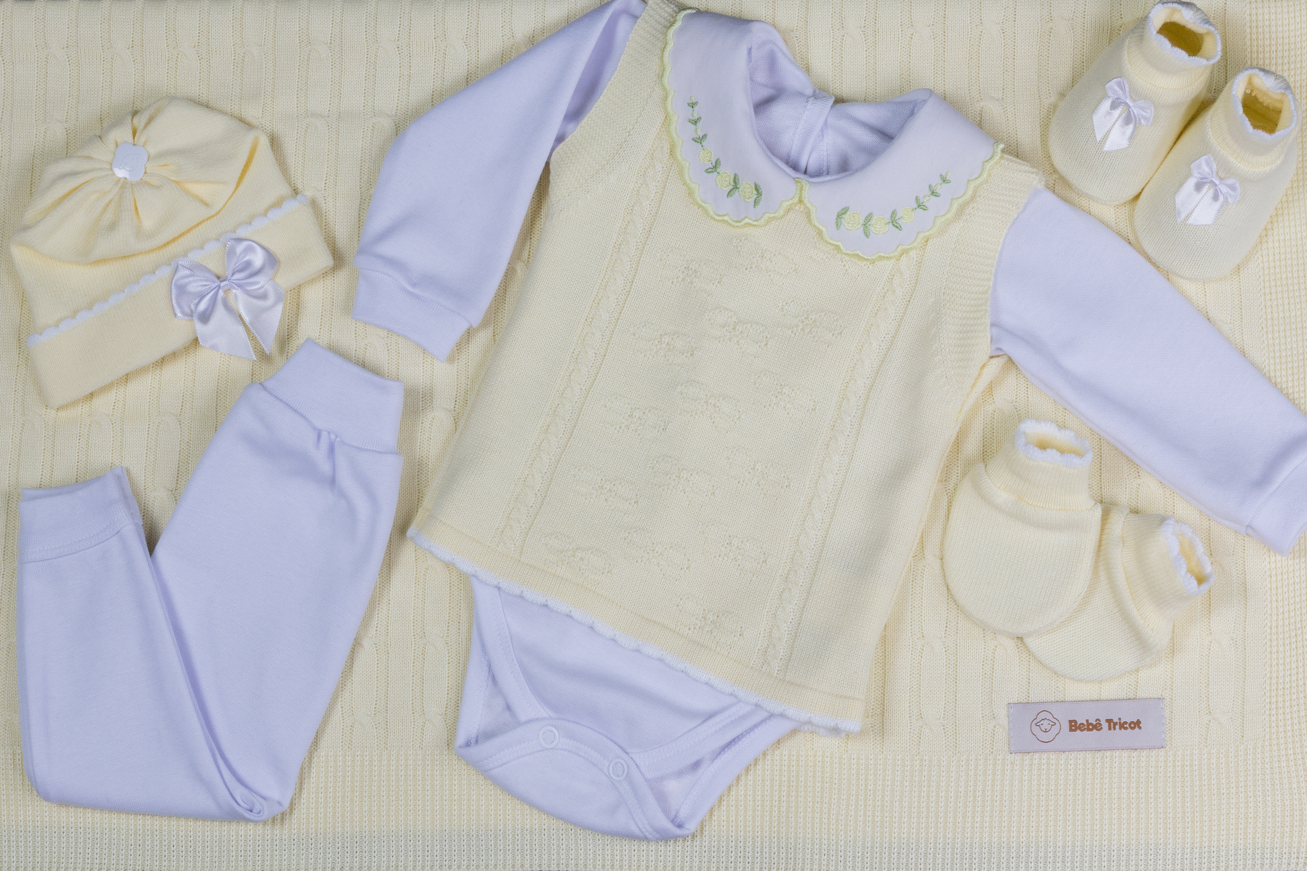 Conjunto Saída de Maternidade Tricot Luxo 6 Peças – Tamanho P (1 a 3 meses)