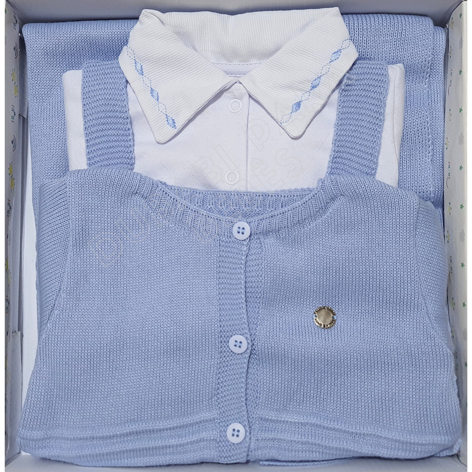 Kit Saida Maternidade Menino P Tricot 4 Peças 1 a 3 Meses Azul Celeste