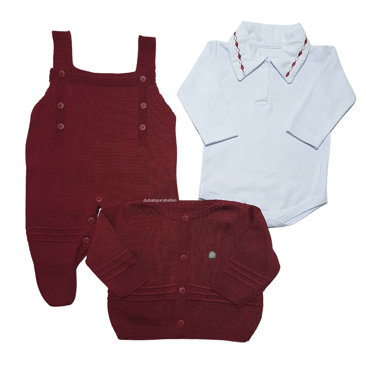 Kit Saida Maternidade Menino P Tricot 4 Peças 1 a 3 Meses Marsala