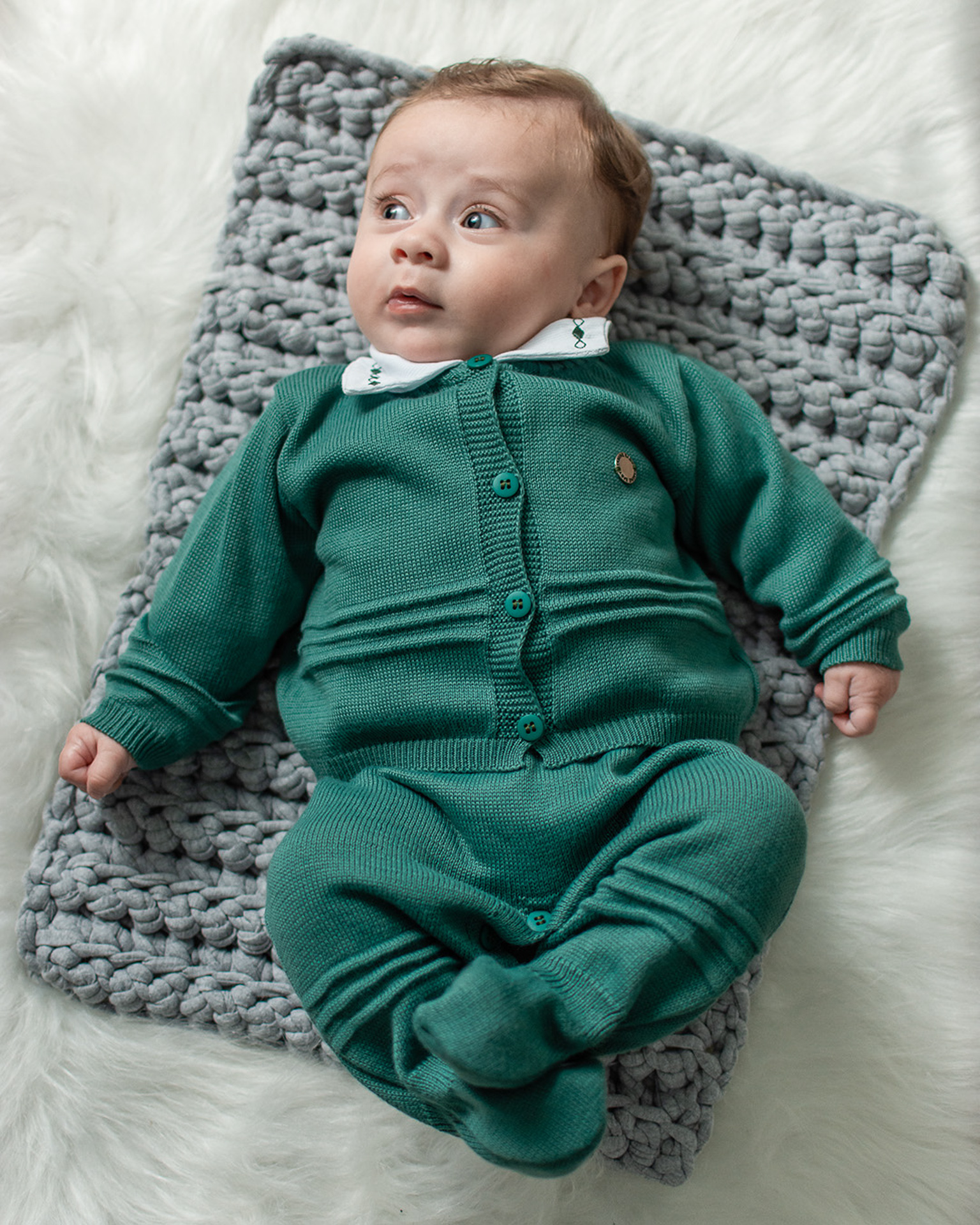 Kit Saida Maternidade Menino P Tricot 4 Peças 1 a 3 Meses Verde Esmeralda