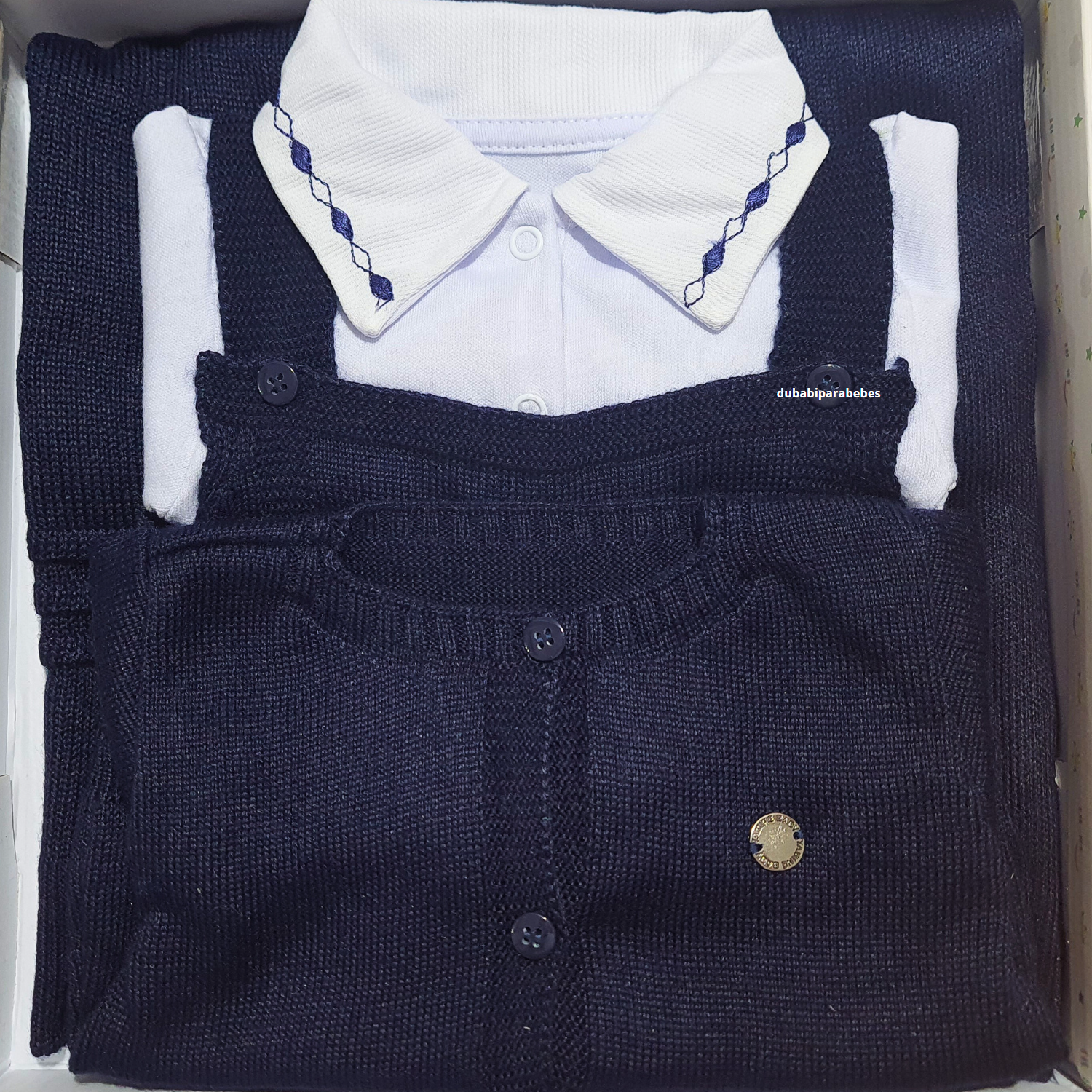 Kit Saida Maternidade Menino P Tricot 4 Peças 1 a 3 Meses Azul Marinho