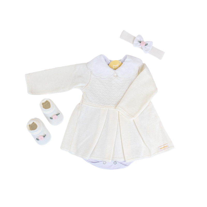 Kit Vestidinho Saída Maternidade Menina com Sapatinho e Tiara – Tamanho RN até 1m