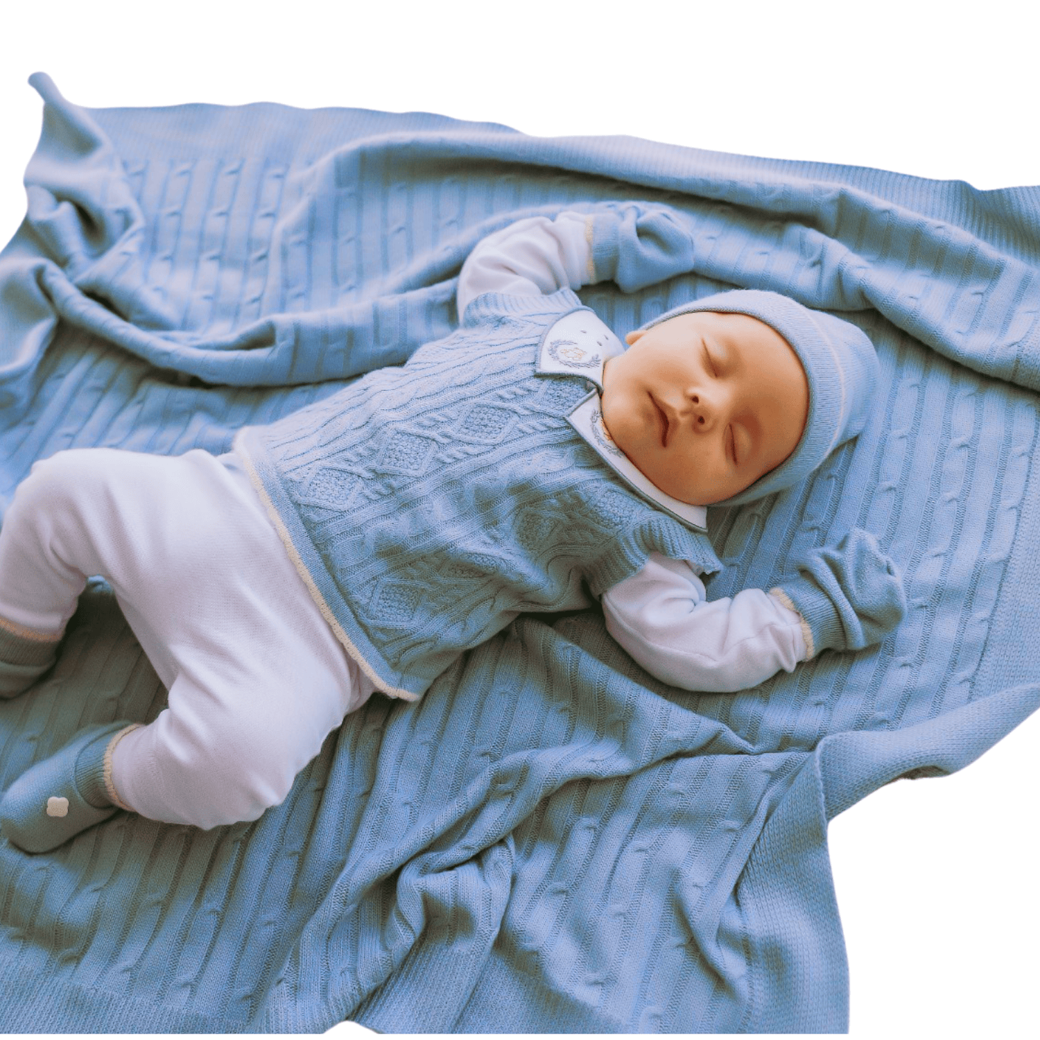 Kit Saída Maternidade Completa Menino 7 Peças Tamanho RN Azul Celeste