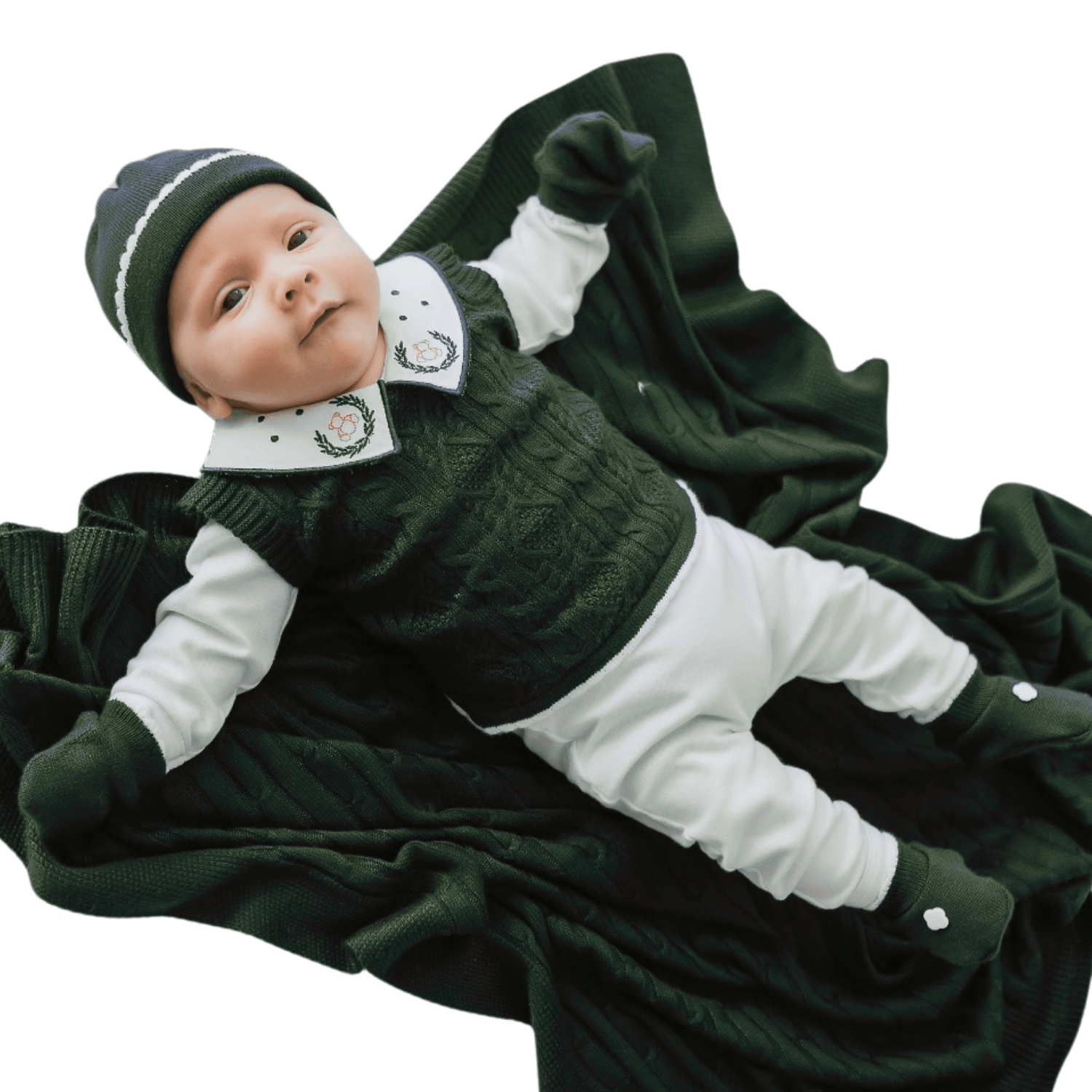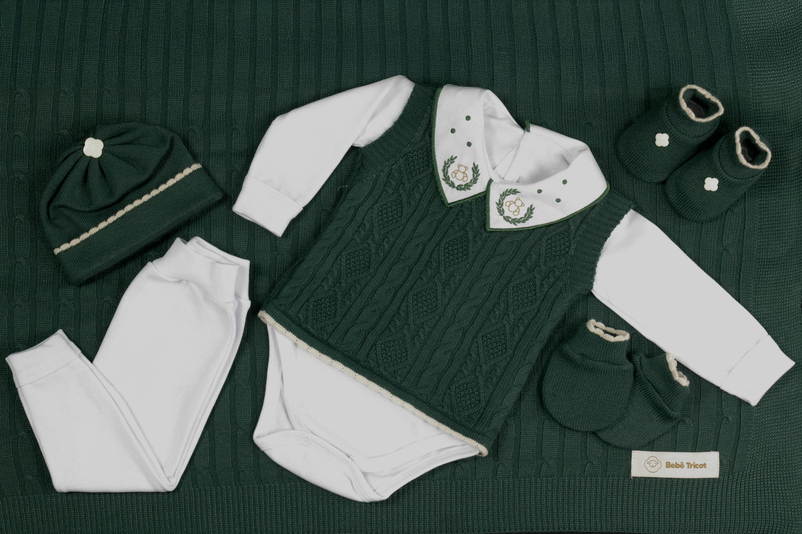 Kit Saída Maternidade Completa Menino 7 Peças Tamanho RN Verde Escuro