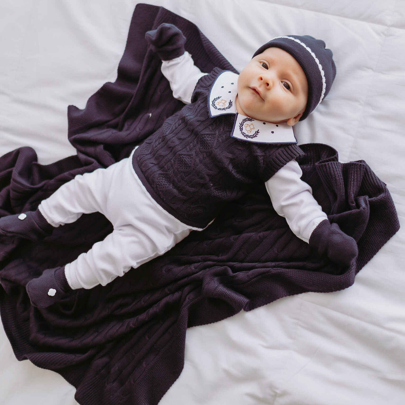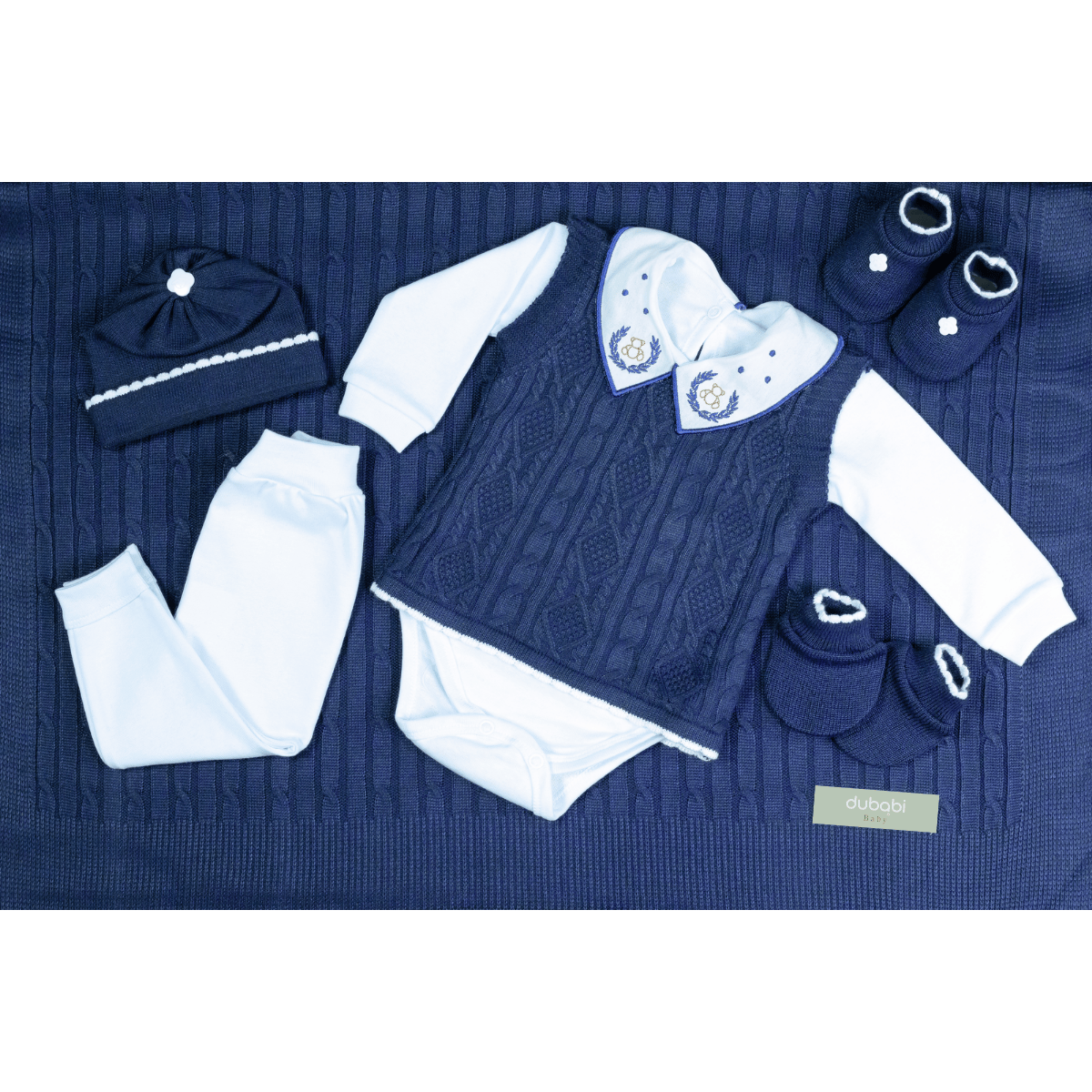 Kit Saída Maternidade Completa Menino 7 Peças Tamanho RN Marinho