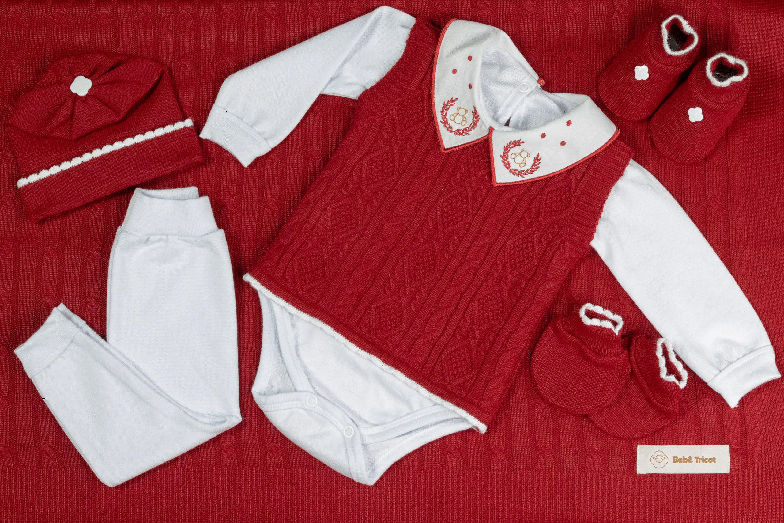 Kit Saída Maternidade Completa Menino Menina 7 Peças Tamanho RN Vermelho